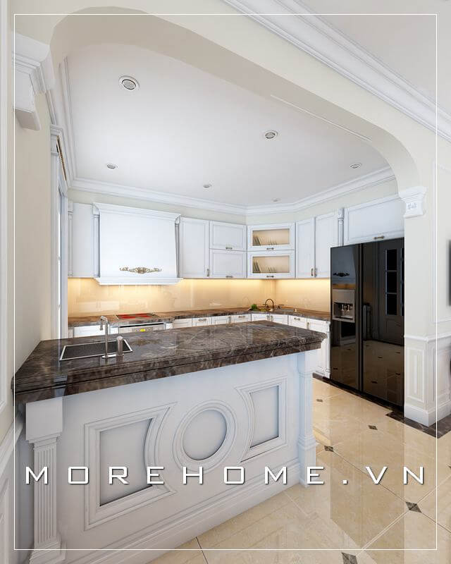 Thiết kế nội thất phòng bếp biệt thự tân cổ điển sang trọng và tiện nghi