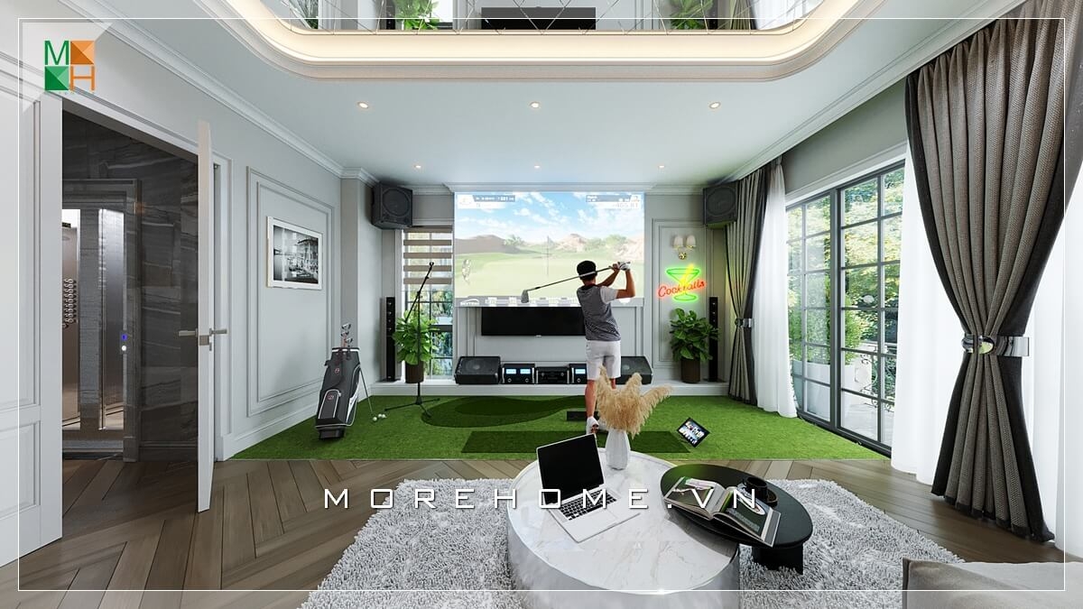 Một ý tưởng mới lại, đầy sáng tạo trong thiết kế nội thất biệt thự với việc bố trí sân golf thông minh tiện lợi ngay trong chính tổ ấm của gia đình.