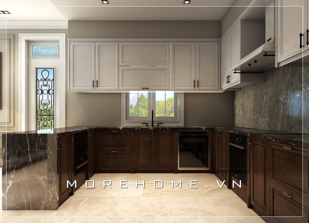 Thiết kế nội thất phòng bếp biệt thự tân cổ điển cao cấp, sang trọng và tiện nghi