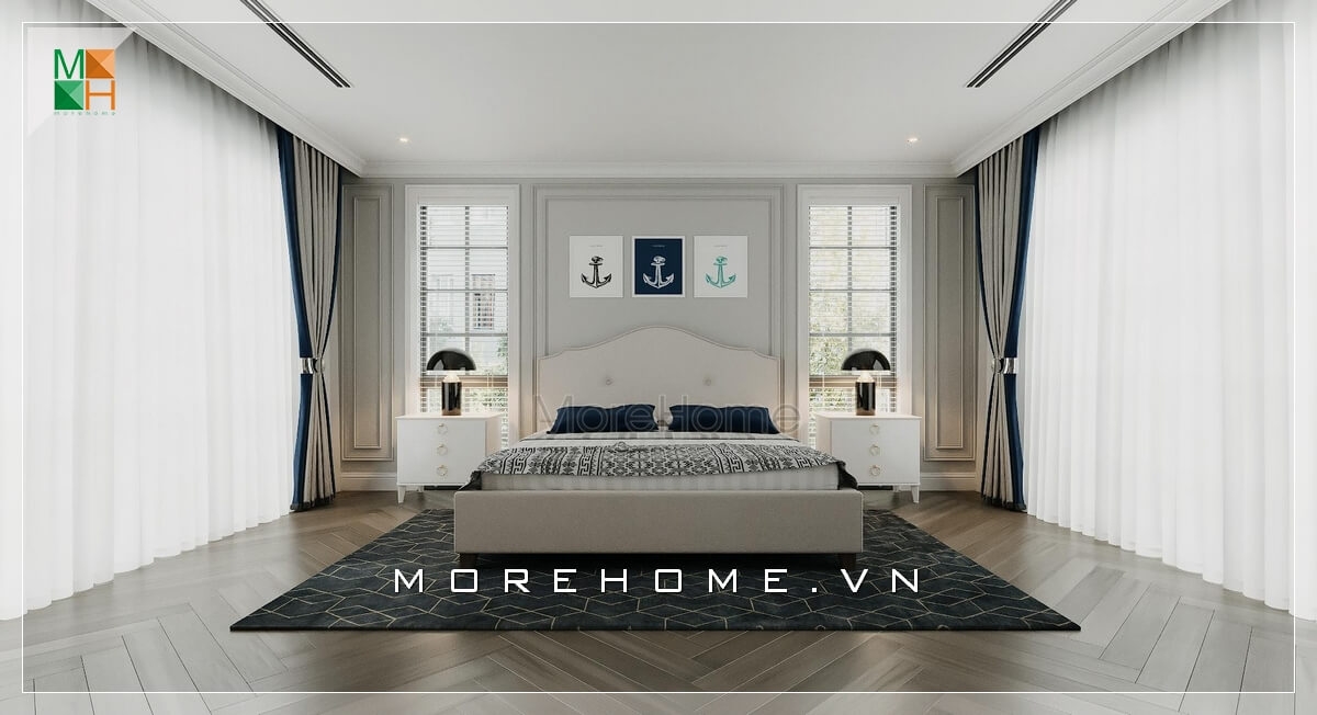 Tâm điểm của thiết kế phòng ngủ dành cho biệt thự, nhà phố là mẫu giường ngủ bọc da cao cấp vừa sang trọng vừa thoải mái cho những phút giây thư giãn ngọt ngào.