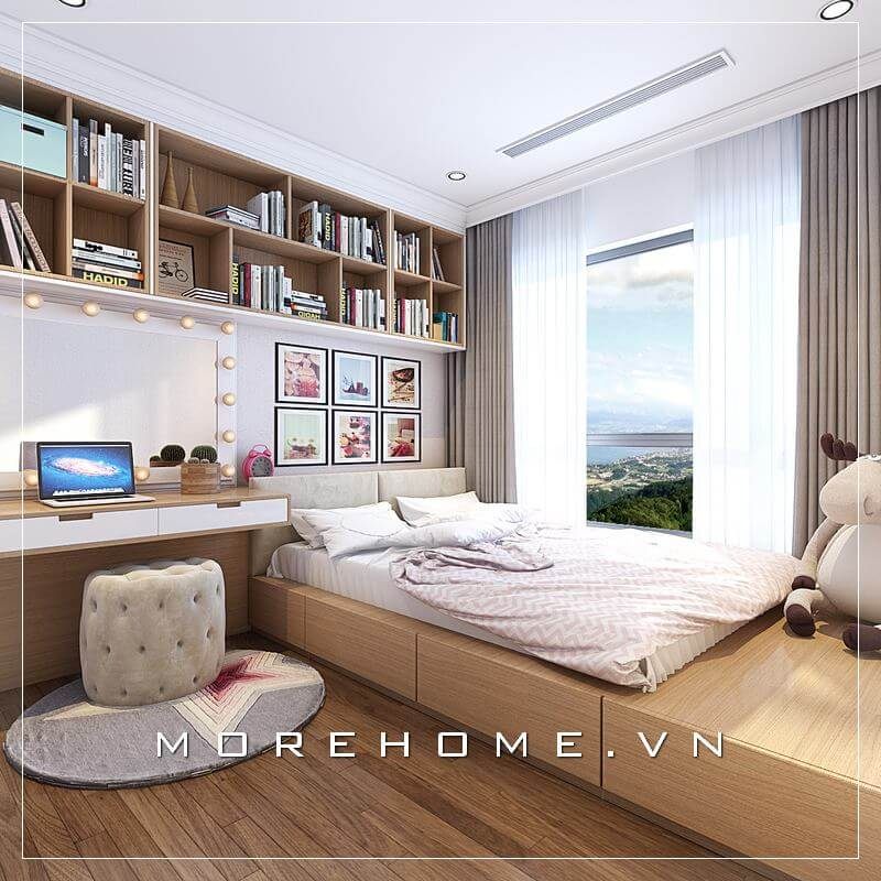 Thiết kế giường ngủ 2 người dành cho chung cư nhỏ phong cách hiện đại, trẻ trung