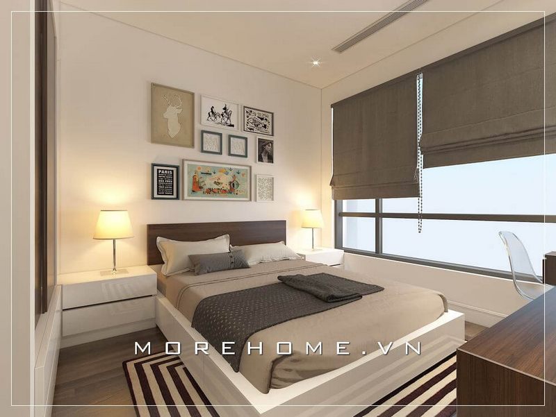 Giường ngủ chung cư hiện đại, được đặt chính giữa căn phòng mang lại cảm giác cân bằng và đảm bảo cho sự nghỉ ngơi được thoải mái hơn