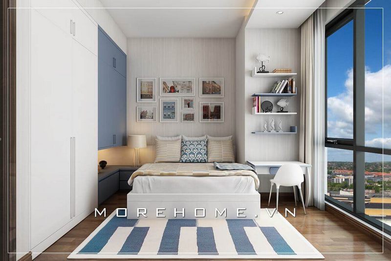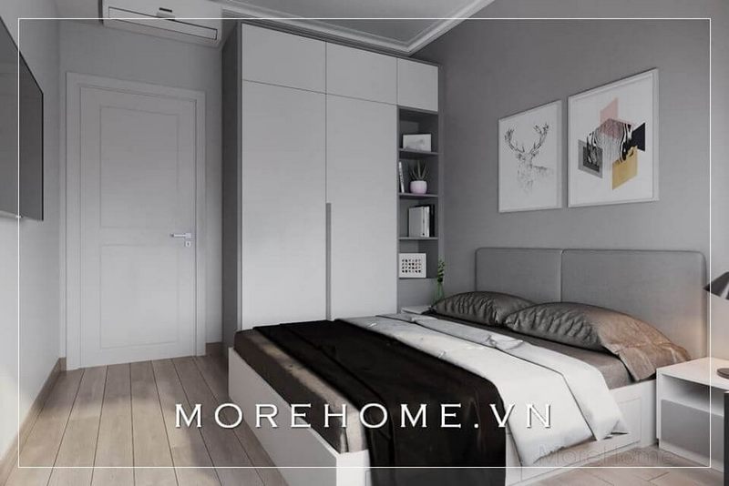 Gợi ý mẫu thiết kế nội thất phòng ngủ hiện đại cho chung cư, nhà phố nhỏ, tủ quần áo được thiết kế kịch trần tạo cho không gian phòng ngủ thêm cao và thông thoáng hơn