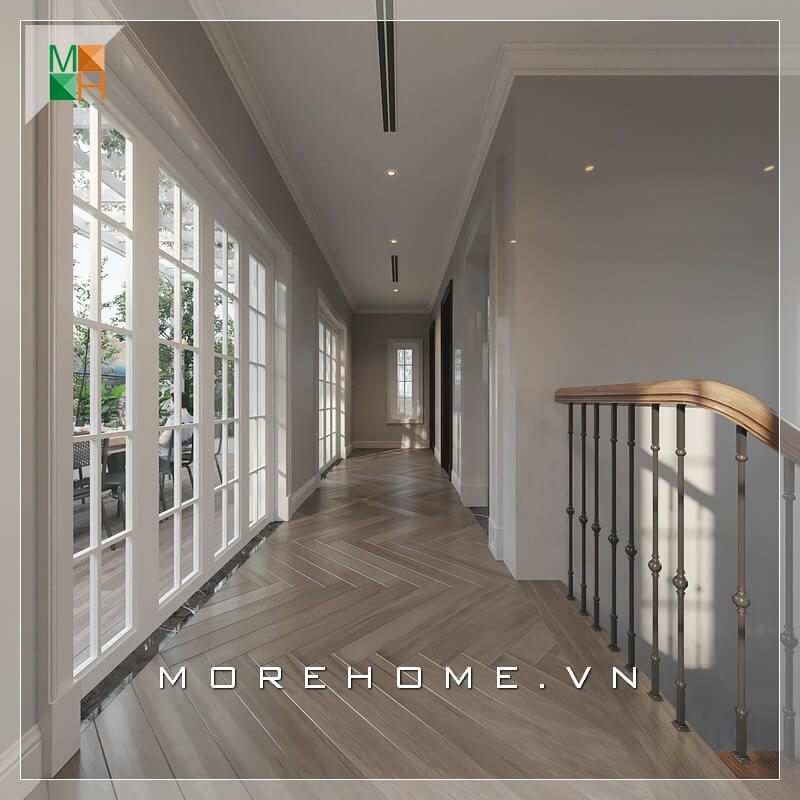 Hàng lang nhà phố, biệt thự thoáng đãng thêm phần rộng rãi với cửa kính tiện nghi đem ánh sáng cho không gian sống lý tưởng.