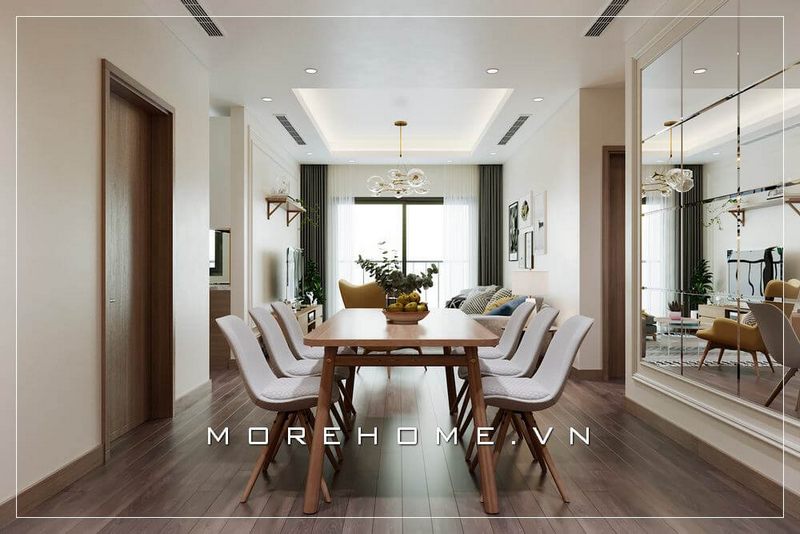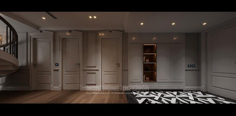 Phòng khách sử dụng cửa gỗ An Cường Laminate vân gỗ tông trầm MH04