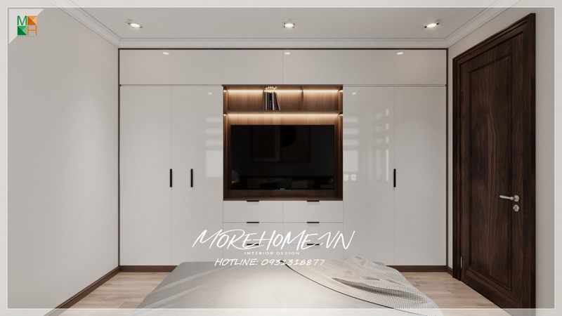 Mẫu tủ quần áo kịch trần 4 cánh mở kết hợp kệ tivi bằng gỗ công nghiệp cho phòng ngủ chung cư, nhà phố, biệt thự phong cách hiện đại