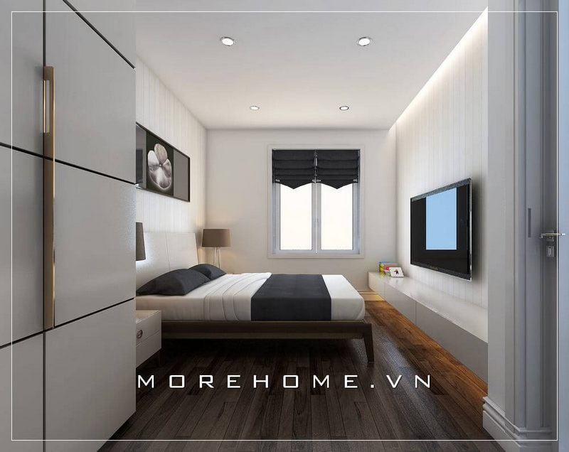 Mẫu thiết kế phòng ngủ nhà phố nhỏ, KTS lựa chọn tone màu trắng chủ đạo giúp cho không gian thêm rộng rãi thông thoáng hơn