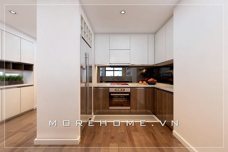 Thiết kế nội thất bếp chung cư và khu vực ăn uống được đặt liền kề mang đến sự tiện nghi cho gia chủ