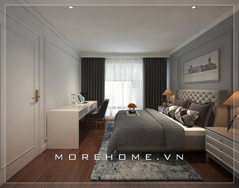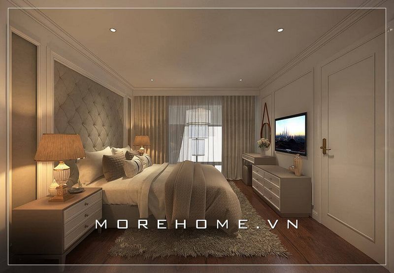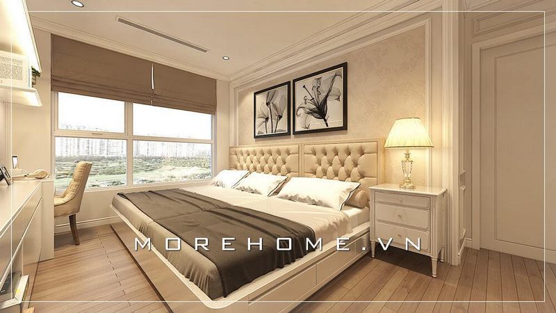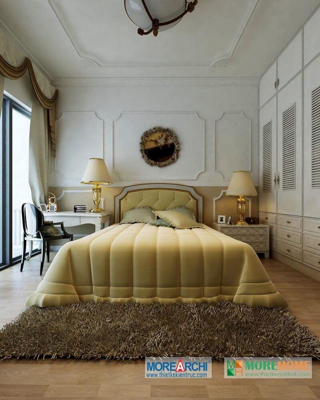 Phòng ngủ được thiết kế ấn tượng với nội thất tân cổ điển cao cấp sang trọng