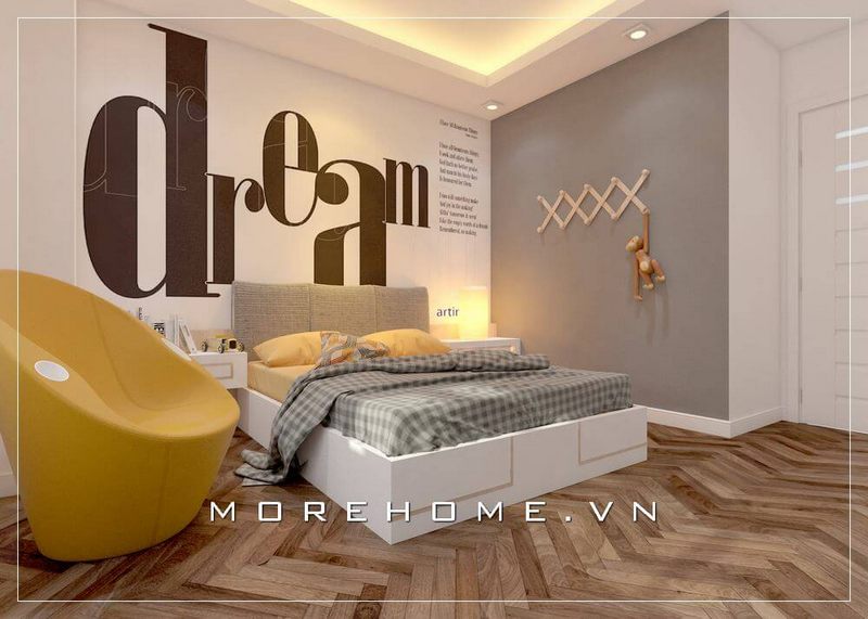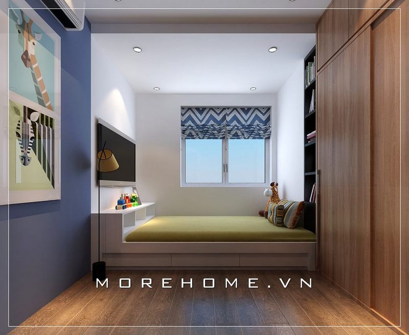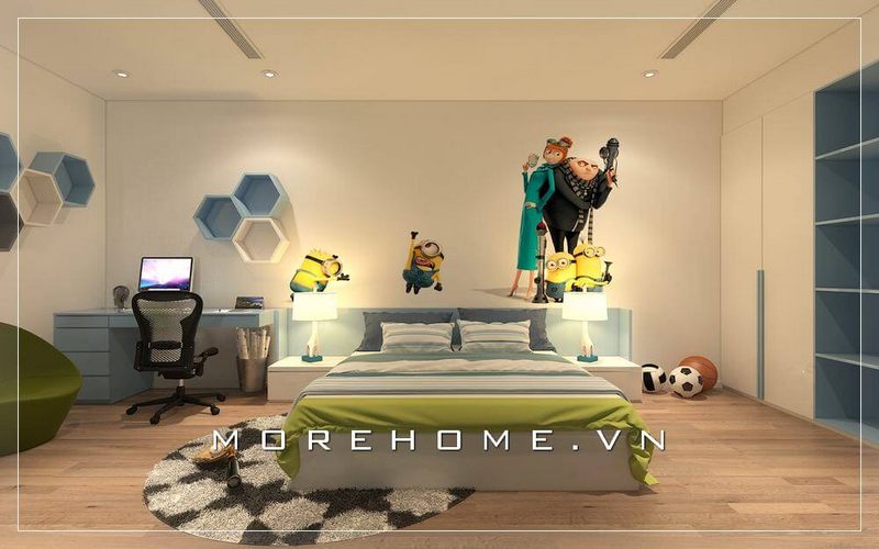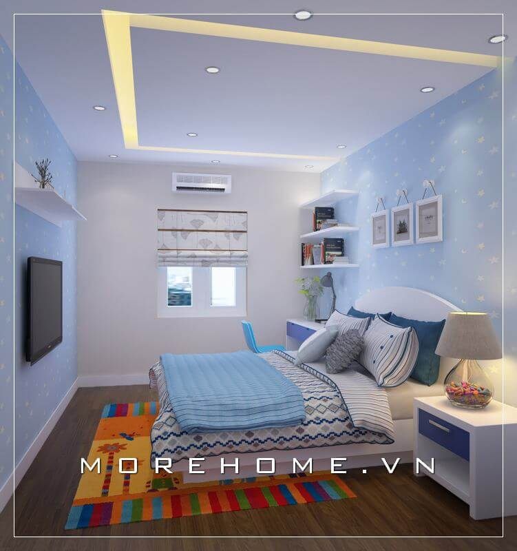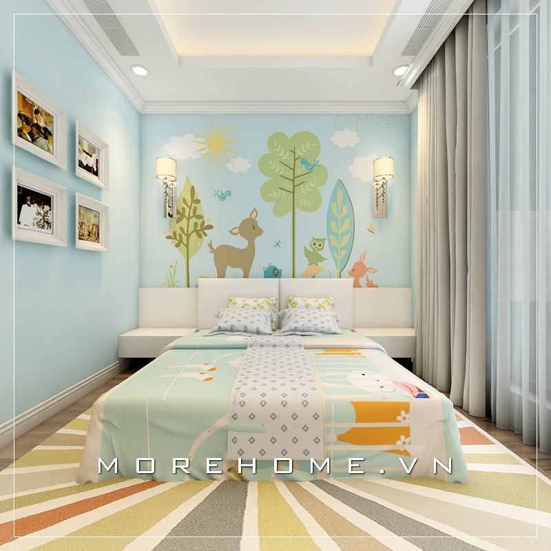 Giường ngủ gỗ công nghiệp với tone màu trắng chủ đạo tạo cho căn phòng của con thêm rộng thoáng hơn