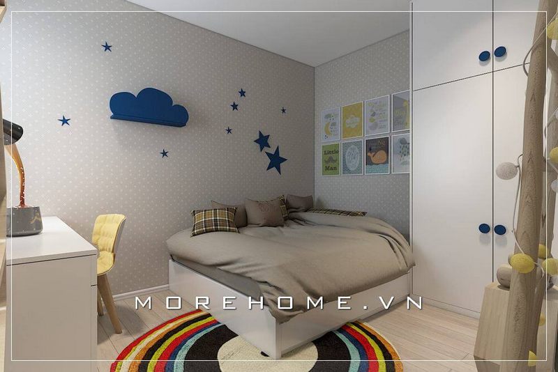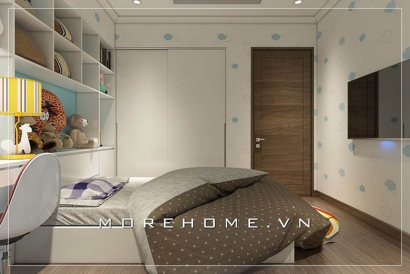 Thiết kế giường ngủ trẻ em gỗ công nghiệp màu trắng ấn tượng tại chung cư hiện đại