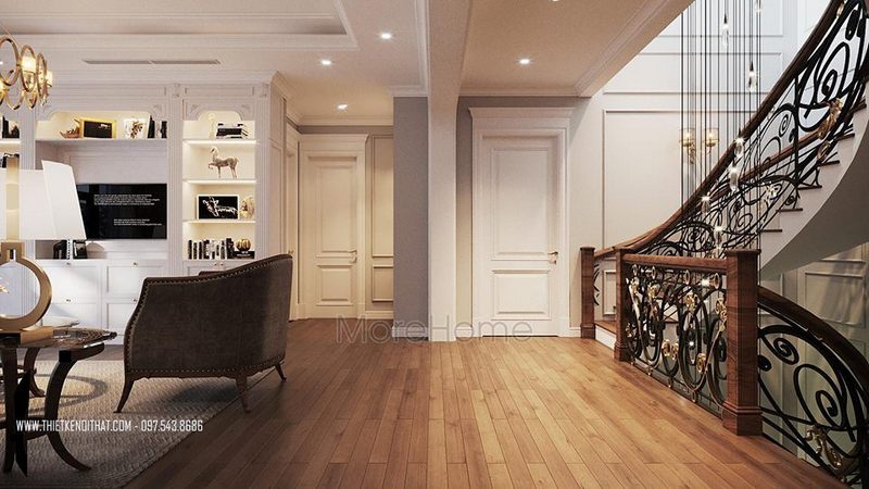 Trang trí nội thất phòng khách thông tầng biệt thự tân cổ điển cao cấp tại Vinhomes Imperia Hải Phòng.