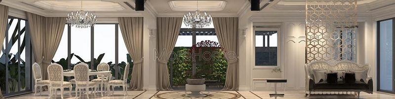 Bố trí nội thất phòng khách tân cổ điển đẹp, sang trọng tại Palm Garden.