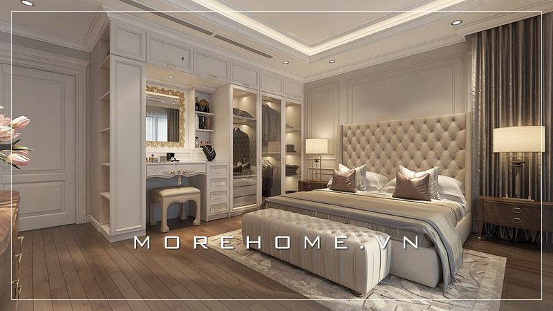 Trang trí nội thất phòng ngủ Master ấn tượng với tủ quần áo hiện đại cánh mở