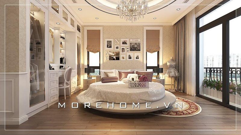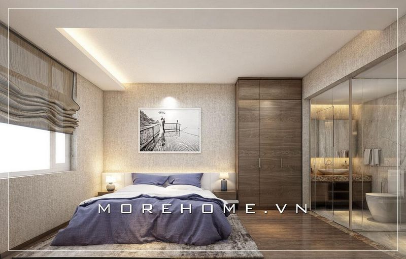 Tủ quần áo phòng Master được làm từ chất liệu gỗ công nghiệp giá rẻ phù hợp với mức đầu tư của nhiều gia đình