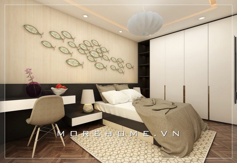 Phòng ngủ chung cư Vinhomes Gardenia kết hợp tủ áo vừa âm tường, vừa cánh lùa, tận dụng tối đa không gian