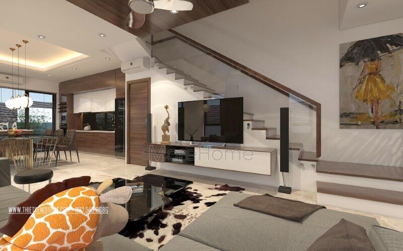 Mẫu tủ kệ phòng khách gỗ công nghiệp hiện đại cho nhà phố Lake View- Tp Hồ Chí Minh