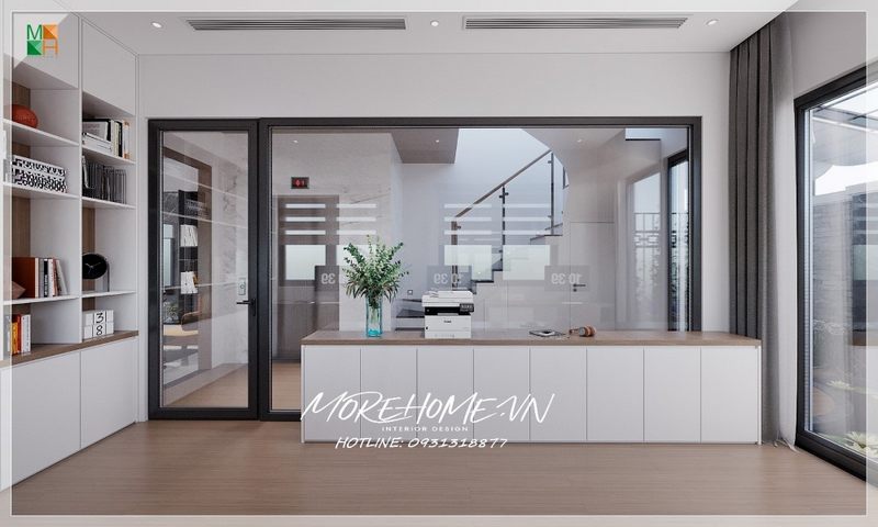 Kệ tủ gỗ công nghiệp màu trắng giúp cất trữ dùng trong phòng làm việc gọn gàng nội thất mang lại thẩm mỹ cao cho phòng