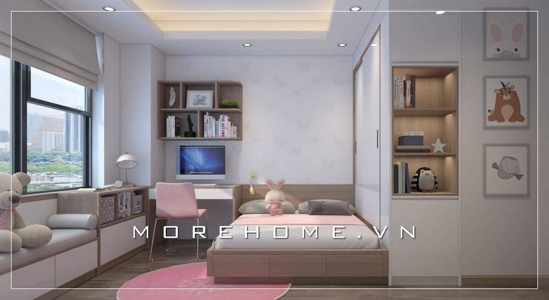 Thiết kế giường ngủ bé gái hiện đại, đa năng kết hợp tủ kệ và bạn học đầy tiện dụng, chắc chắn con bạn sẽ vô cùng yêu thích không gian sống của mình đấy nhé!