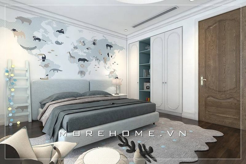 Giường ngủ trẻ em hiện đại với phần chân thấp giúp con dễ dàng lên xuống và dọn dẹp vệ sinh