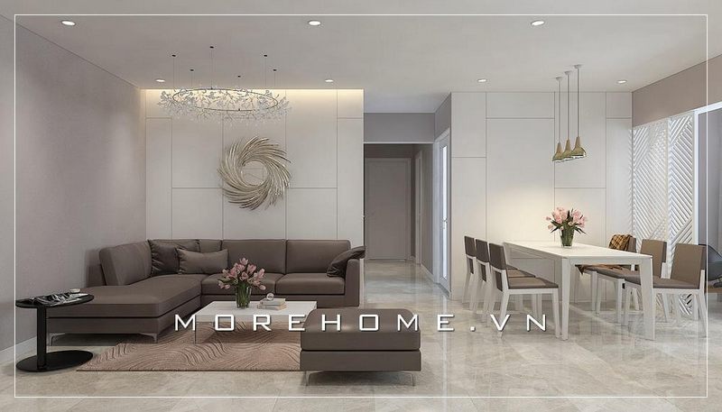 Mẫu thiết kế nội thất chung cư cao cấp với tông màu chủ đảo xám trắng mang đến sự sang trọng, tiện nghi