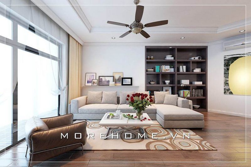 Mẫu sofa bọc vải màu trắng đơn giản cho không gian phòng khách hiện đại tạo nên không gian nhẹ nhàng, ấm cúng và tươi mới cho căn hộ chung cư