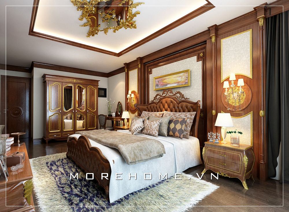 Giường ngủ chung cư cao cấp bọc nỉ phong cách tân cổ điển sang trọng